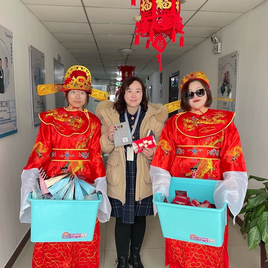 新年上班第一天,河北賽諾為小諾米們準(zhǔn)備了開(kāi)工紅包,并由兩位喜慶的“財(cái)神爺”親自送到小諾米的手里。